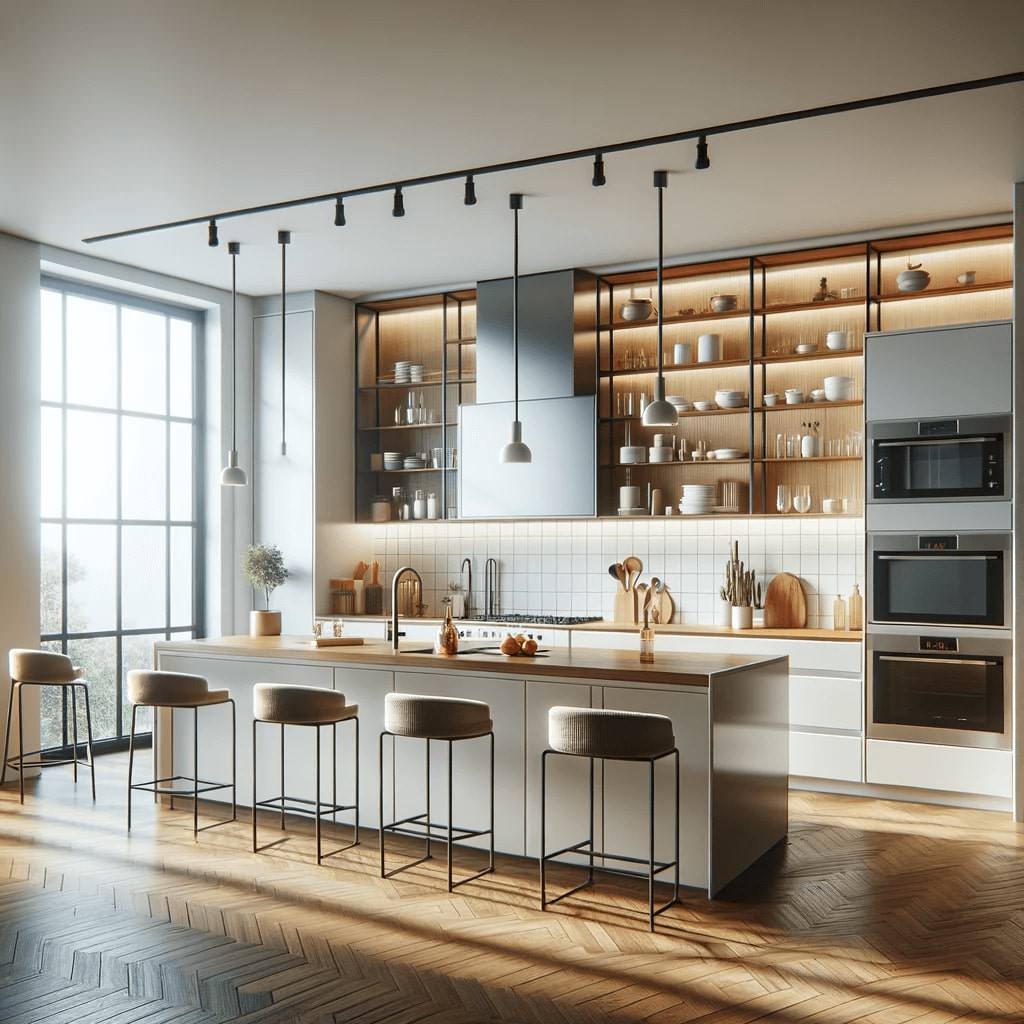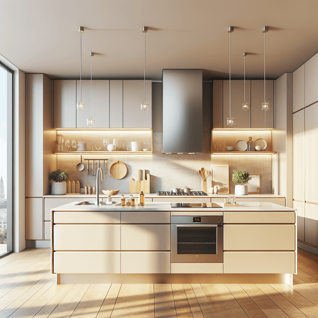 Beleuchtung: Eine gute Beleuchtung ist unerlässlich, um in Ihrer Küche effektiv arbeiten zu können. Stellen Sie sicher, dass Sie über ausreichend Decken- und Arbeitsplatzbeleuchtung verfügen. Denken Sie auch an zusätzliche Akzentbeleuchtung wie Unterbauleuchten oder Hängeleuchten über dem Esstisch.